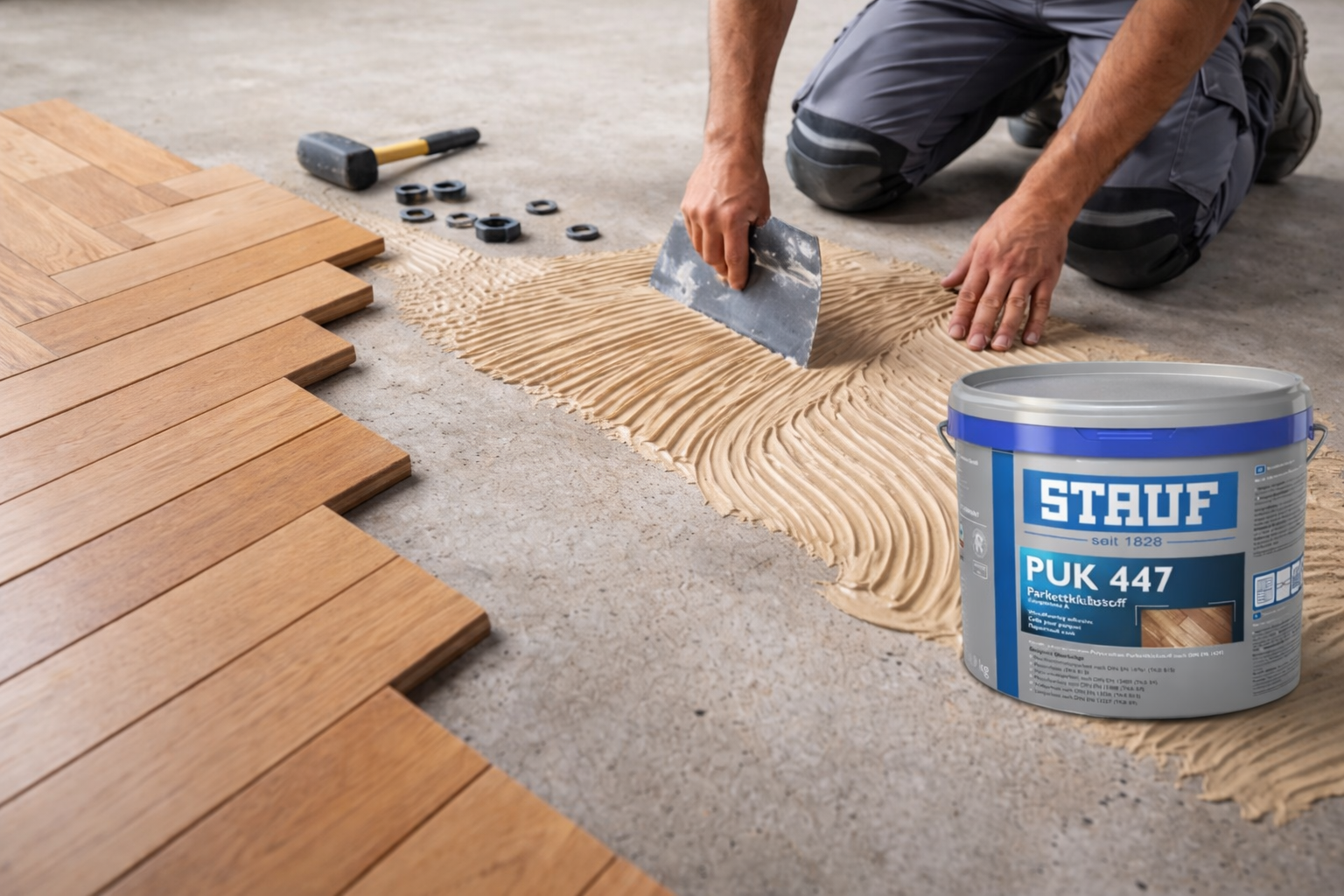 Для надійної фіксації професіонали часто рекомендують клей Stauf, який має високу адгезію та не містить надлишкової води. Це знижує ризик набухання деревини й забезпечує стабільність покриття протягом усього строку служби.
